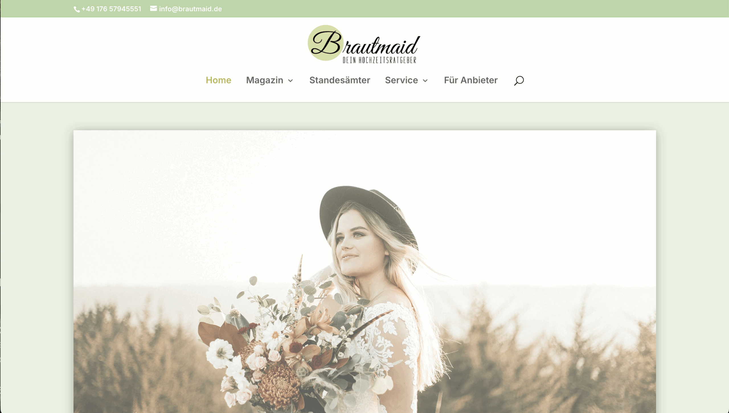 Das Layout folgt klaren Gestaltungsprinzipien: großzügige Zwischenräume, gut lesbare Headlines und ein stilsicheres Farbschema, das nicht überfrachtet, sondern unterstützt. Die Menüstruktur ist logisch gegliedert. Brautmaid.de ist ein gelungenes Beispiel dafür, wie emotionales Storytelling, klare Gestaltung und systematische Struktur harmonisch vereint werden.