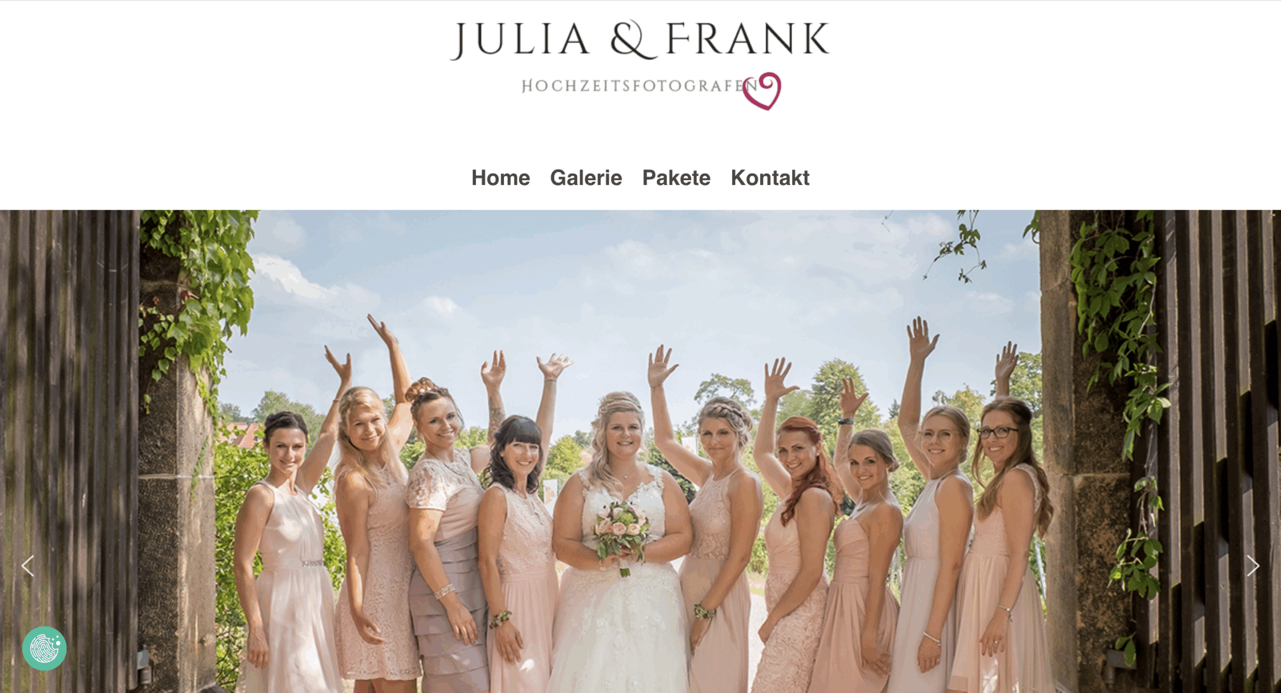 Im Design beeindruckt die Balance zwischen Gefühl und Klarheit: großzügige Weißräume, mehrschichtige Bildsprache und eine klare, lesbare Typografie ergeben eine ruhige, vertrauensvolle Ästhetik – ideal abgestimmt auf Brautpaare. Der Fokus liegt klar auf Emotionalität und Authentizität. juliaundfrank.de vermittelt durch emotionales Storytelling, transparente Paketdarstellung und empathisches Design genau das Gefühl von Sicherheit und Individualität, das Paare an ihrem großen Tag suchen.