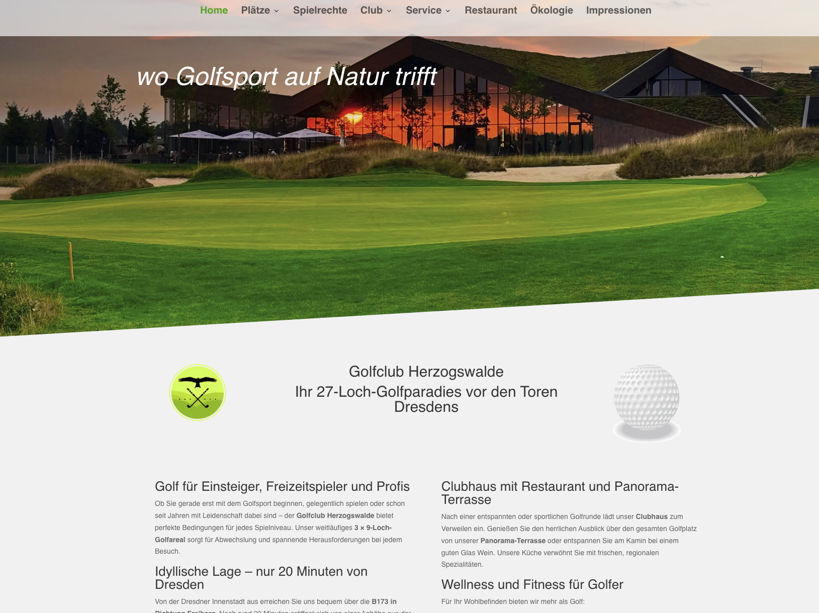 Die Webseite des Golfclub Herzogswalde haben wir bewusst schlicht, modern und naturverbunden gestaltet. Großformatige Bilder und eine ruhige Farbwelt vermitteln sofort das Erlebnis „Golf inmitten der Natur“. Die Navigation ist klar strukturiert, sodass Einsteiger wie erfahrene Golfer schnell die gewünschten Informationen finden. Inhalte sind nicht in einer Golfer spezifischen Sprache gehalten, um eine breite Zielgruppe anzusprechen. Technisch wurde auf schnelle Ladezeiten, mobile Optimierung und einfache Pflege geachtet. Insgesamt soll die Seite die Werte des Clubs – Natur, Sport, Gemeinschaft und Qualität – transportieren und gleichzeitig einladend und nutzerfreundlich wirken.